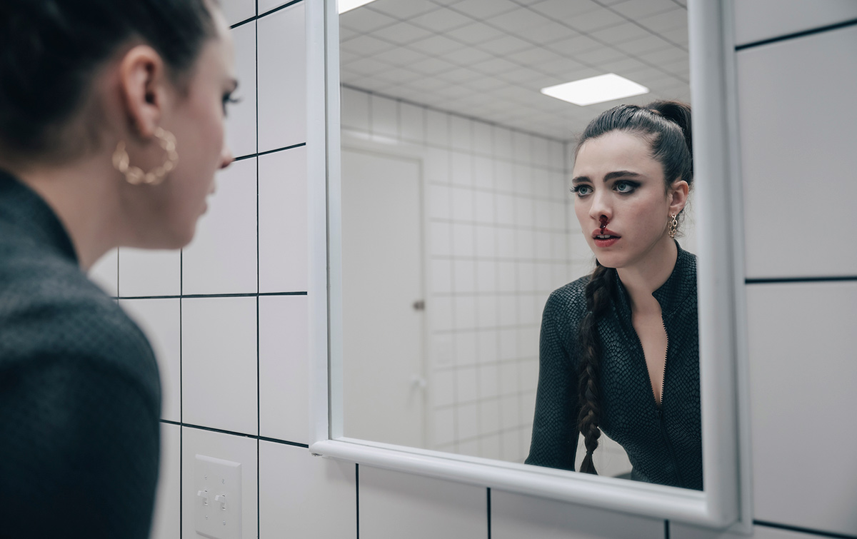 The casting of Demi Moore–whose career began in the late 80s and soared into the 90s when she became the highest paid actress in Hollywood–adds a level of gravitas to a project centered on toxic perceptions of aging, especially with regard to women in the entertainment industry. Many scenes require little more than her presence to evoke a sense of instant recognition and shared cultural memory that makes it all the more disturbing when Elisabeth scrutinizes her own body, failing to see all the ways in which she remains impossibly beautiful in any other context.