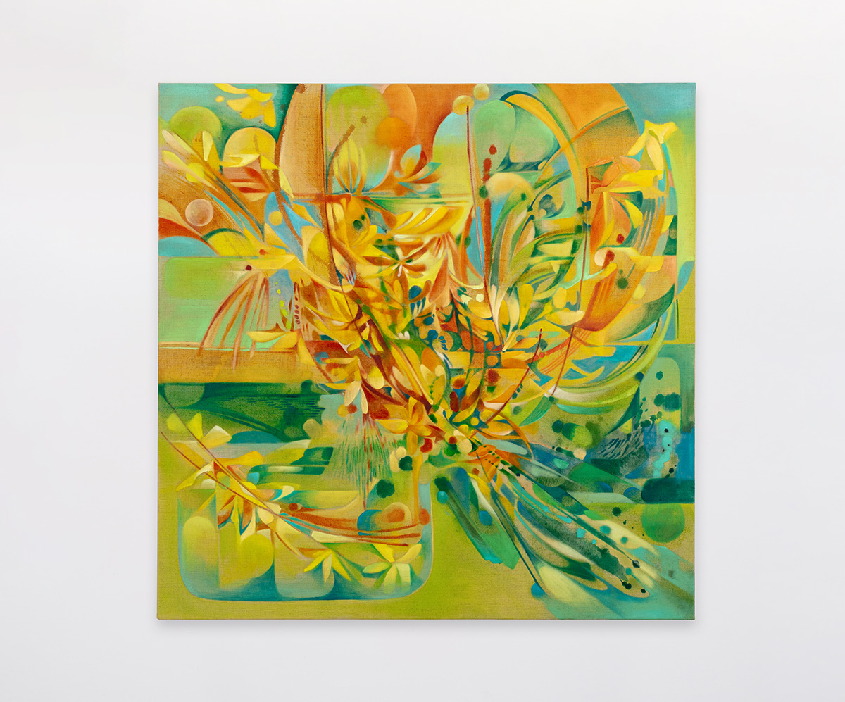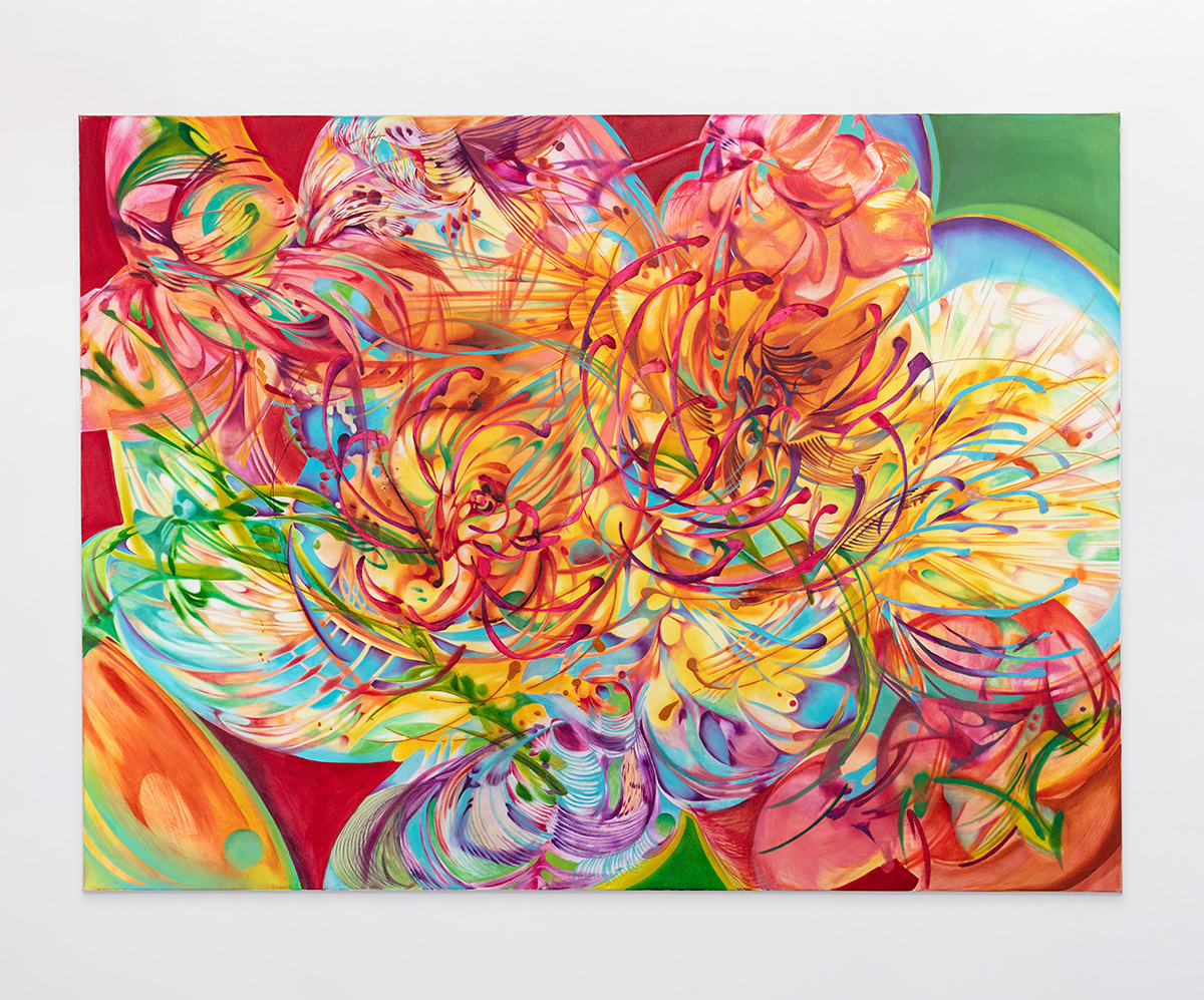 Vibrant paintings by artist Ji Won Cha. Born in Gyeonggi-do, South Korea and currently based in London, Cha earned her BFA in Painting from RISD and her MA in Painting from the Royal College of Art. Cha’s work offers up a sense of sublime fluctuation or controlled chaos. Her paintings capture the feeling of experiencing something both very quickly and in slow motion, creating a kind of deliberate turbulence. Taking images from nature as a starting point, Cha’s paintings evolve into new forms and energies, a fluid landscape operating by a logic all their own.