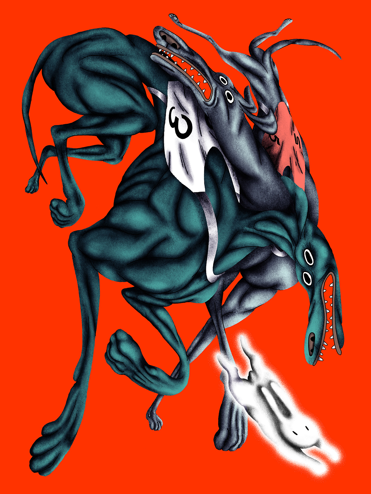A selection of work by Amsterdam-based illustrator and artist Andrew Tseng. While initially studying psychology, Tseng eventually decided to follow his deep desire to pursue art and applied to art school. Whether working on commercial or personal projects, Tseng incorporates his abstract sense of humour and grotesque characters into all of his pieces. He also enjoys experimenting with printmaking techniques (screen printing and risograph printing) as well as ceramics, and often brings that tactile quality into even his digital work.