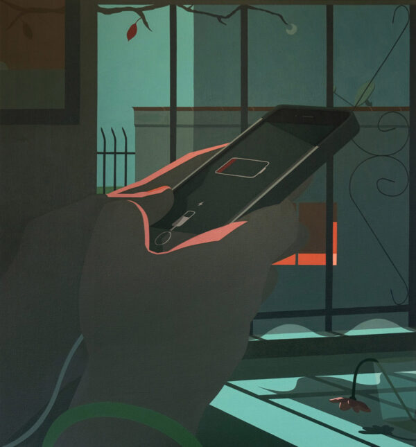 “Because my compositions tend to center on the ephemeral, the intimate and the fragmentary, I typically work from low-resolution corners of larger reference photos. The resulting painting process is highly interpolative, and involves supplementing my source material with extensive visual research as well as direct observation. The highly-saturated and largely invented palette shifts the images away from a feeling of immediate perception and towards a more interior space informed by mood and memory.”