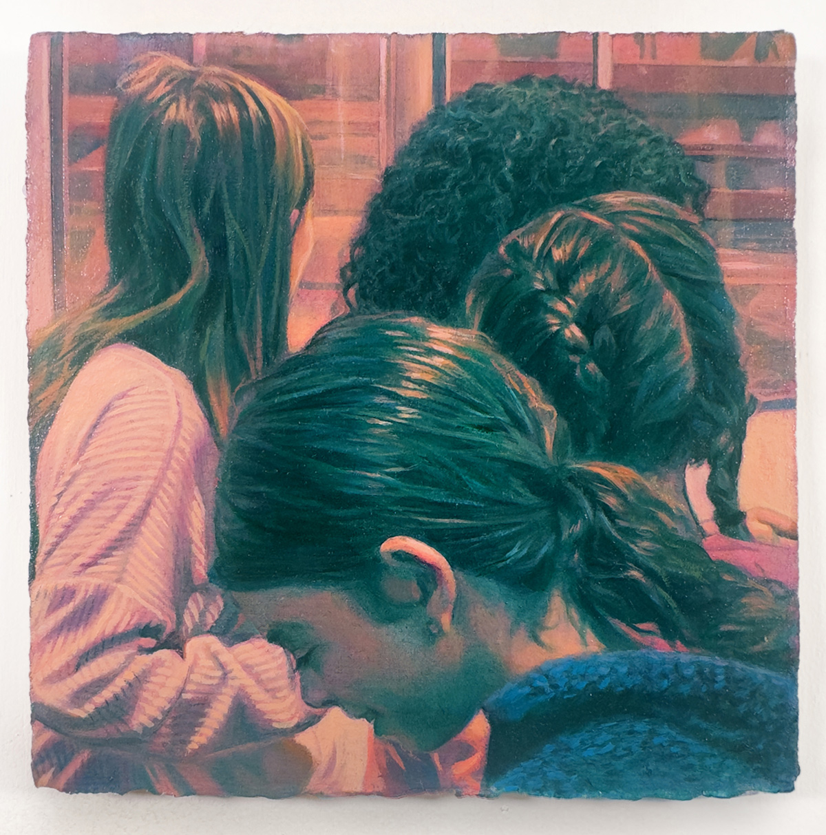 In this way, the series is also about motherhood and the sense of “time travel” Henderson herself experiences in the presence of her adolescent collaborators (her daughter and daughter’s friends). “I observe them in the rear-view mirror or from the bleachers,” Henderson describes “my personal sensory memories of braces, split ends and peeling nail polish are always present.” Sourcing her imagery from an archive of personal iPhone snapshots, Henderson is interested in the capacity of representational painting to draw attention to what may have originally been casual or peripheral visual information: