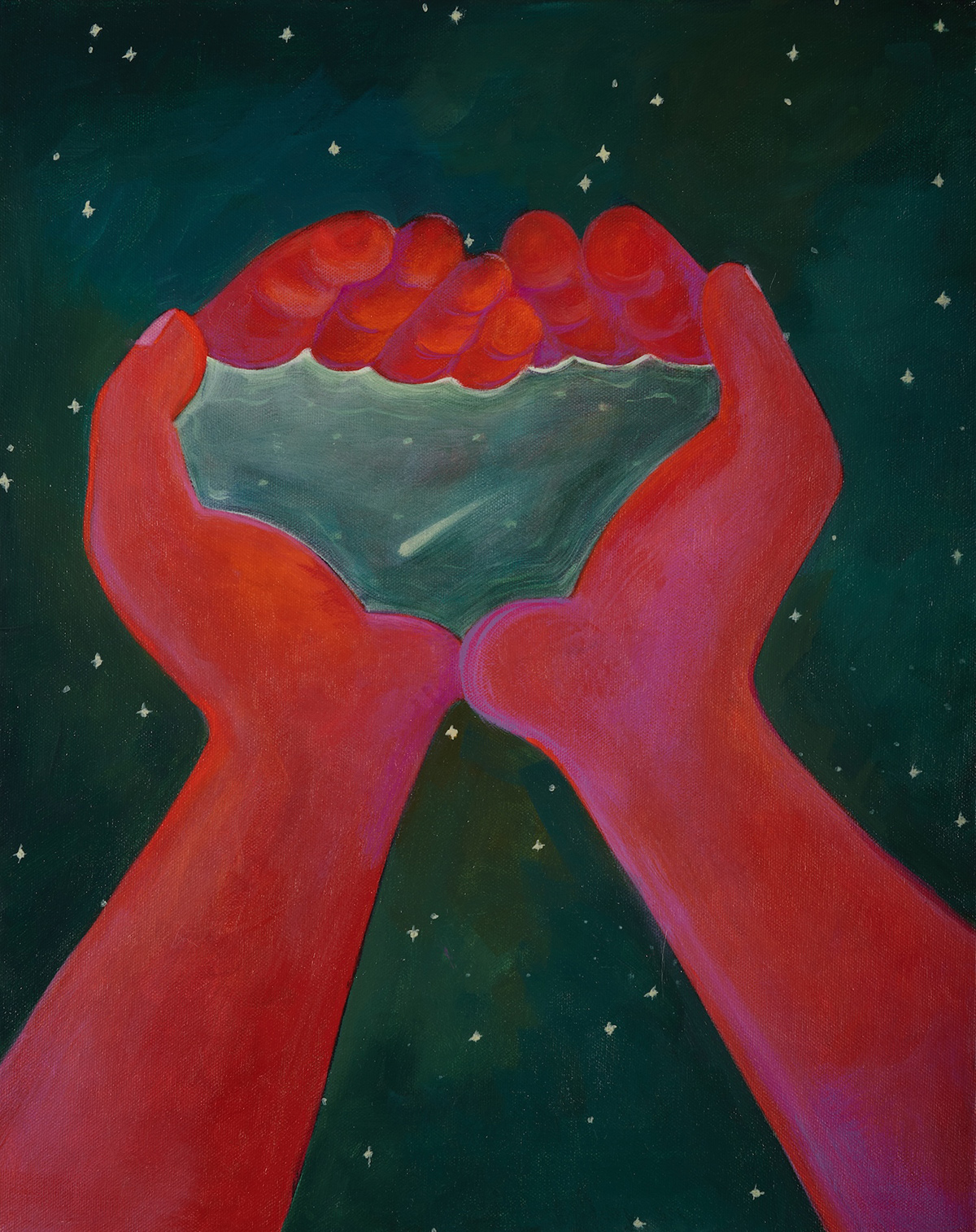 “My paintings acknowledge and reflect a world where female power is derived from collaboration, self-endowed agency, and connection with the natural world. I consider ideas of collection, adornment, beauty, and choice as the figures within the worlds of my work construct spaces that engage ideas of ritual and practice. These paintings in particular explore the quiet force of attention, and the ways in which we cultivate meaning by what we choose to tend to.”